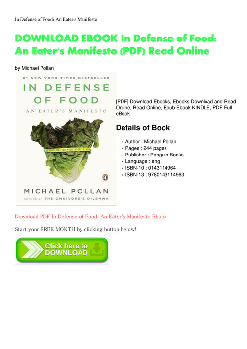Download In Defense Of Food An Eater S Manifesto Pdf Free Video